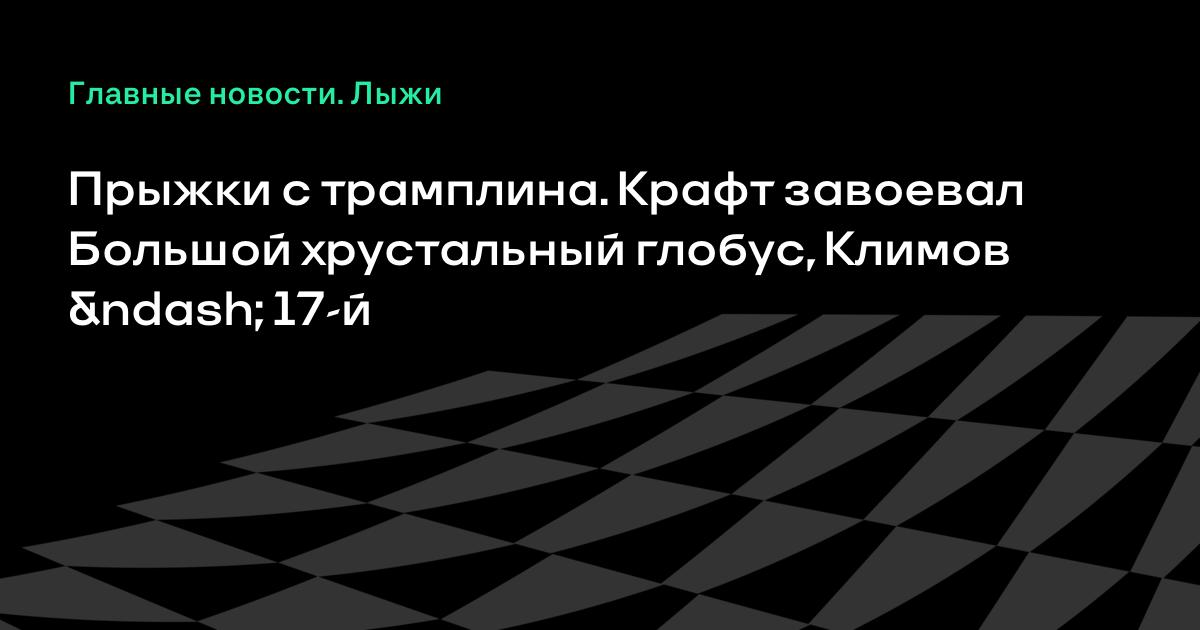 Прыжки с трамплина. Крафт завоевал Большой хрустальный глобус, Климов – 17-й
