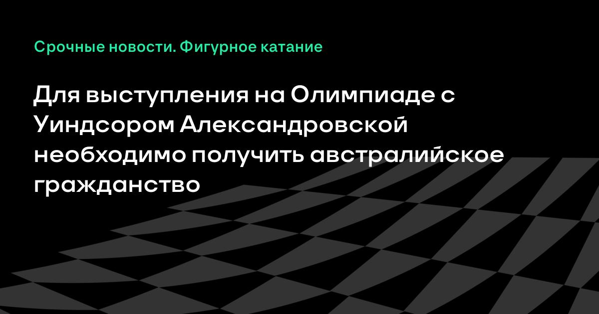 Для выступления на Олимпиаде с Уиндсором Александровской необходимо получить австралийское гражданство