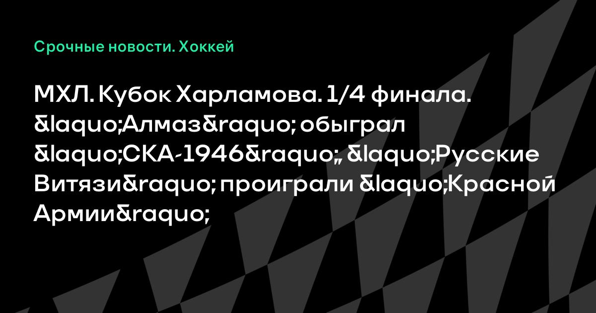 МХЛ. Кубок Харламова. 1/4 финала. «Алмаз» обыграл «СКА-1946», «Русские Витязи» проиграли «Красной Армии»