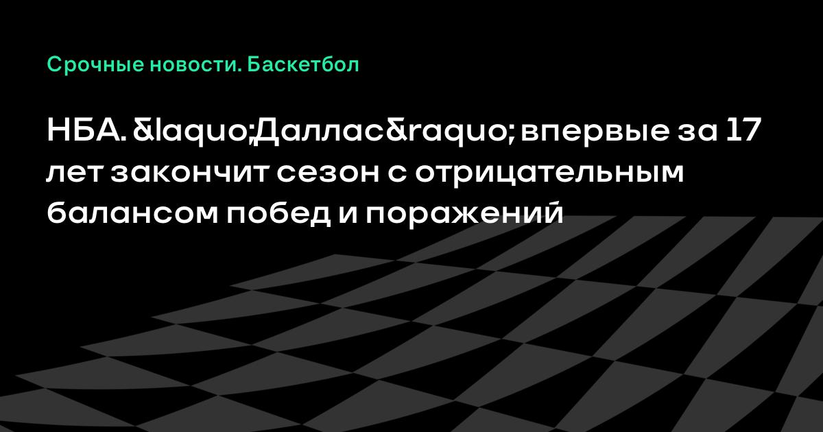 НБА. «Даллас» впервые за 17 лет закончит сезон с отрицательным балансом побед и поражений