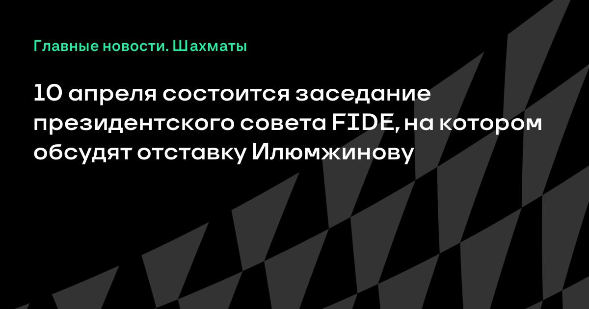 Исполнительный директор Международной федерации шахмат (FIDE) Найджел Фримен сообщил, что 10 апреля пройдет внеочередное заседание президентского совета FIDE, на котором будет обсуждаться отставка президента организации Кирсана Илюмжинова.