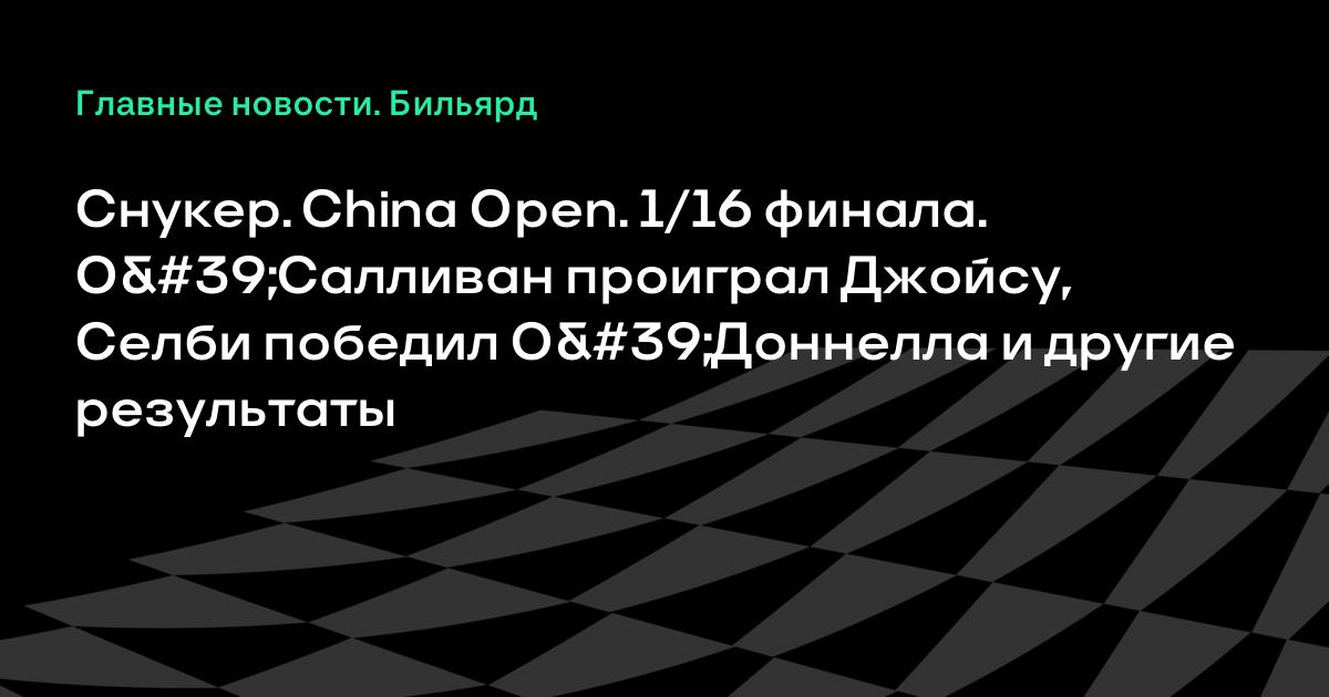 Снукер. China Open. 1/16 финала. О'Салливан проиграл Джойсу, Селби победил О'Доннелла и другие результаты