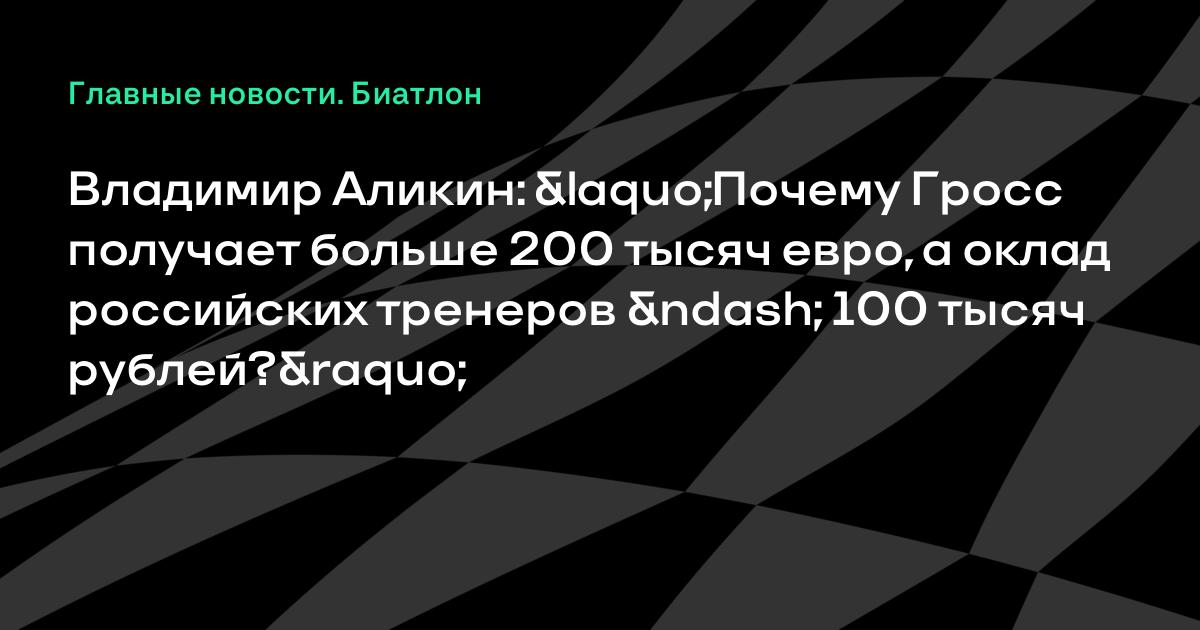 Владимир Аликин: «Почему Гросс получает больше 200 тысяч евро, а оклад российских тренеров – 100 тысяч рублей?»