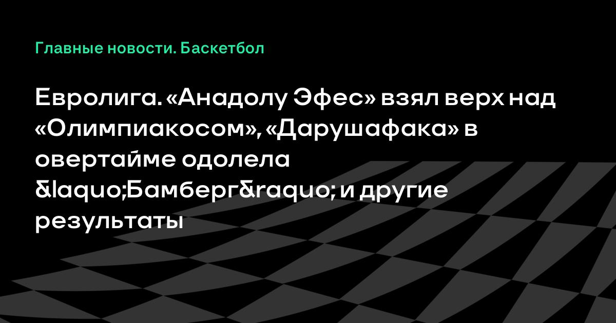 Евролига. «Анадолу Эфес» взял верх над «Олимпиакосом», «Дарушафака» в овертайме одолела «Бамберг» и другие результаты