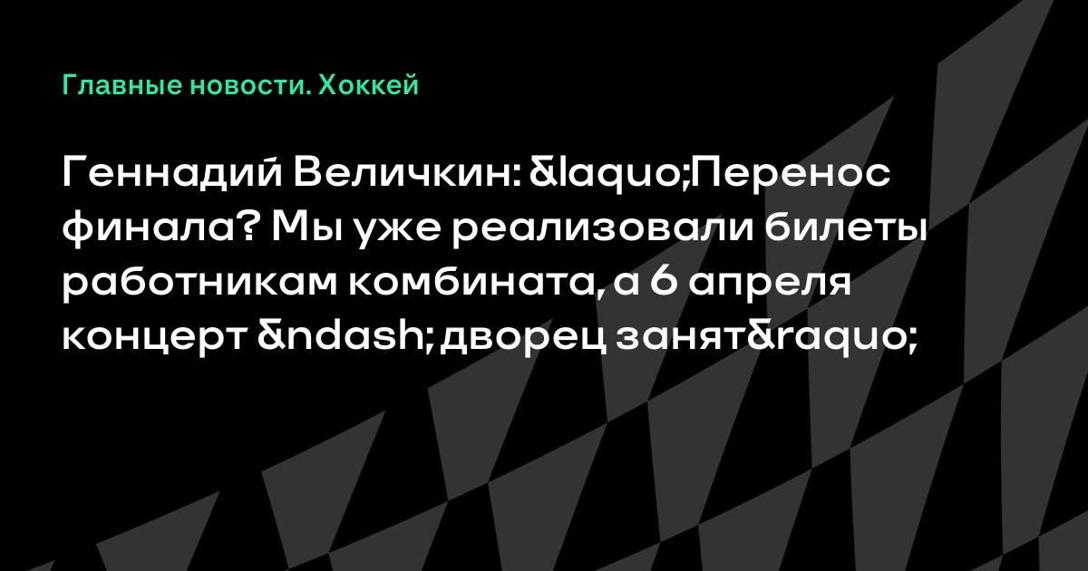 Геннадий Величкин: «Перенос финала? Мы уже реализовали билеты работникам комбината, а 6 апреля концерт – дворец занят»