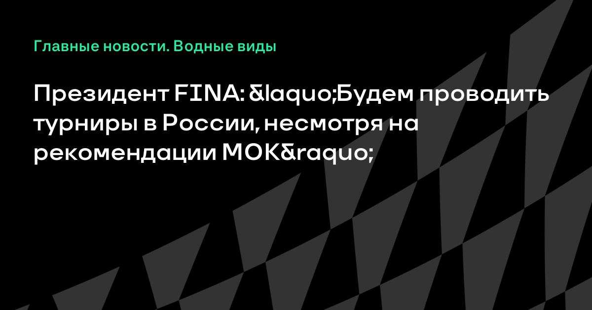 FINA продолжит и в дальнейшем проводить турниры под своей эгидой в России, несмотря на рекомендации МОК. Позиция спортсменов, которые с радостью приезжают на соревнования в Россию, говорит сама за себя», – сказал Маглионе на пресс-конференции в Казани, где в эти дни проходит этап Мировой серии по прыжкам в воду.