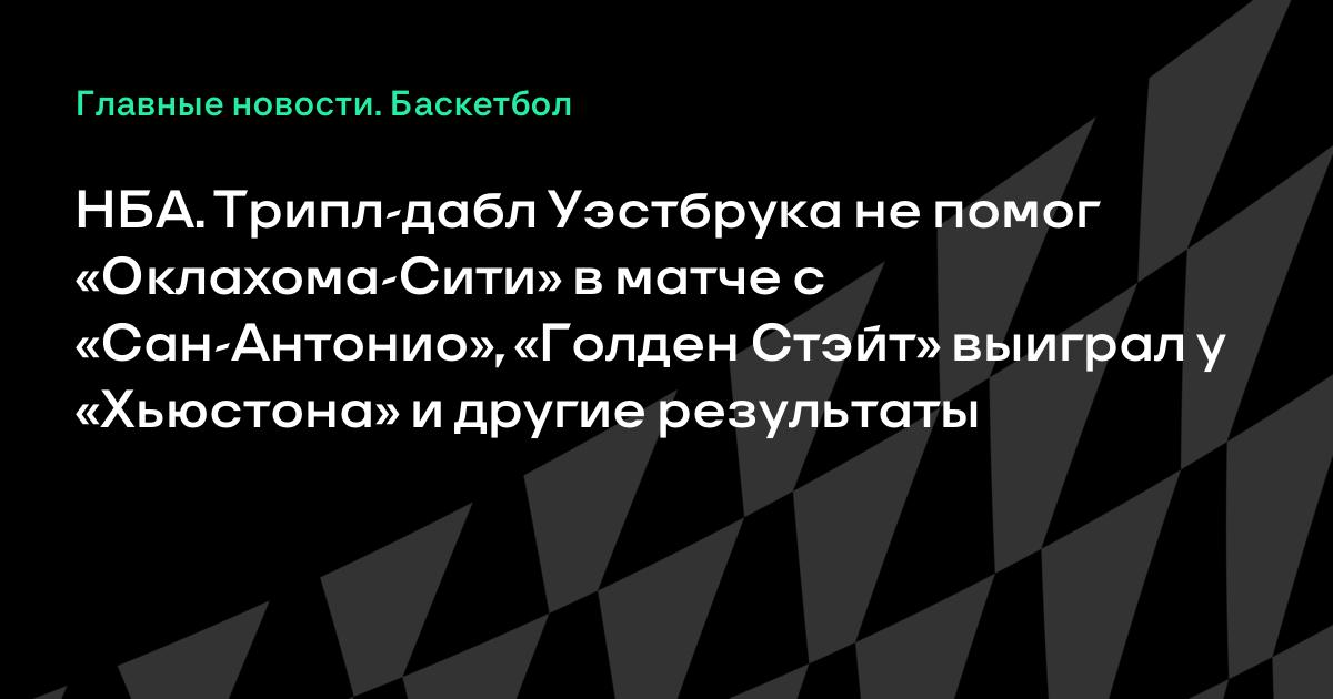 НБА. Трипл-дабл Уэстбрука не помог «Оклахома-Сити» в матче с «Сан-Антонио», «Голден Стэйт» выиграл у «Хьюстона» и другие результаты