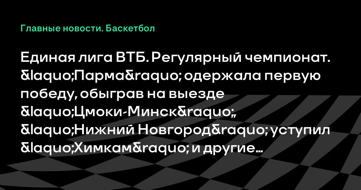 Единая лига ВТБ. Регулярный чемпионат. «Парма» одержала первую победу, обыграв на выезде «Цмоки-Минск», «Нижний Новгород» уступил «Химкам» и другие результаты