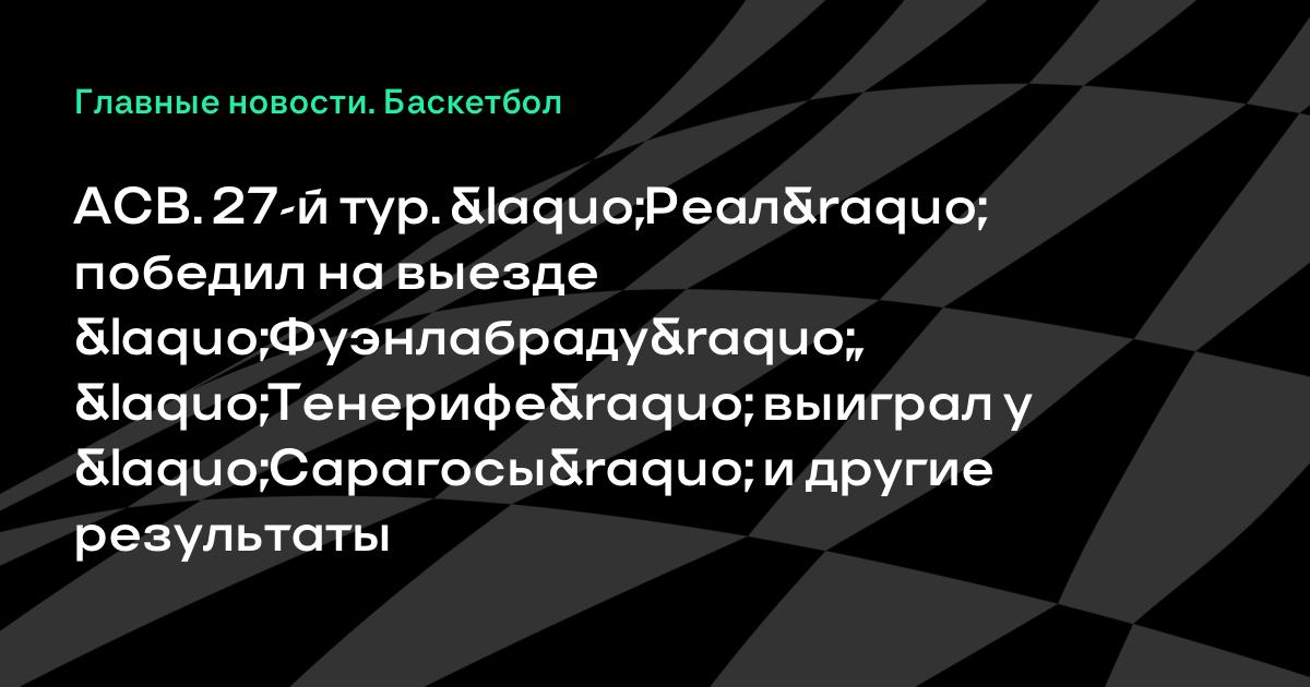 ACB. 27-й тур. «Реал» победил на выезде «Фуэнлабраду», «Тенерифе» выиграл у «Сарагосы» и другие результаты