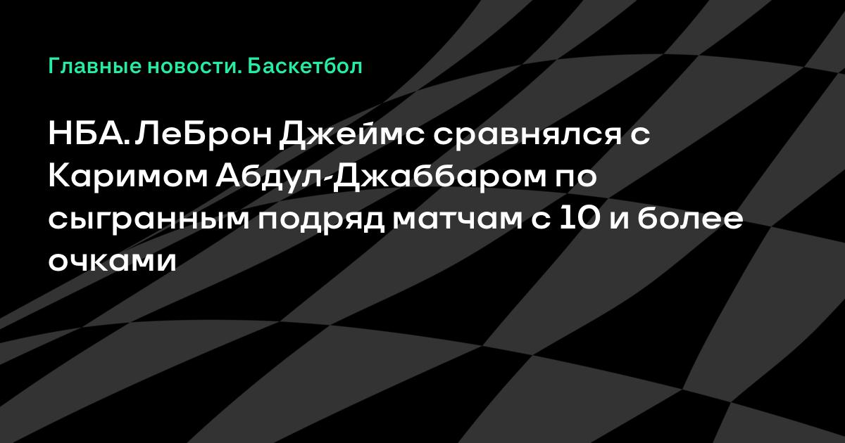 НБА. ЛеБрон Джеймс сравнялся с Каримом Абдул-Джаббаром по сыгранным подряд матчам с 10 и более очками
