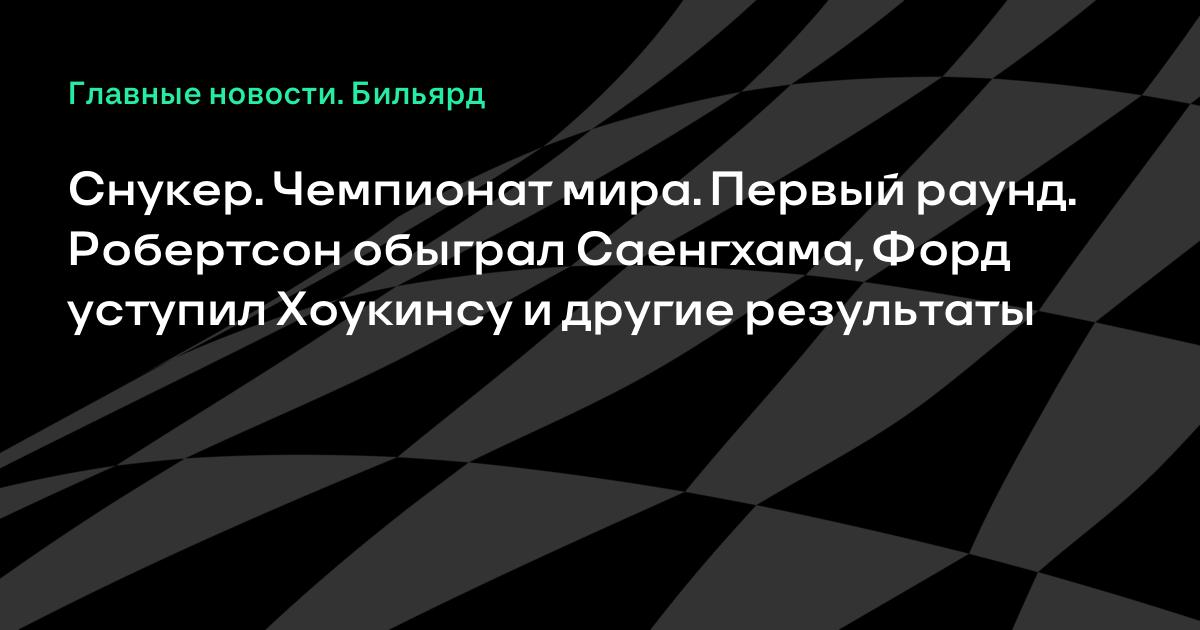 Снукер. Чемпионат мира. Первый раунд. Робертсон обыграл Саенгхама, Форд уступил Хоукинсу и другие результаты