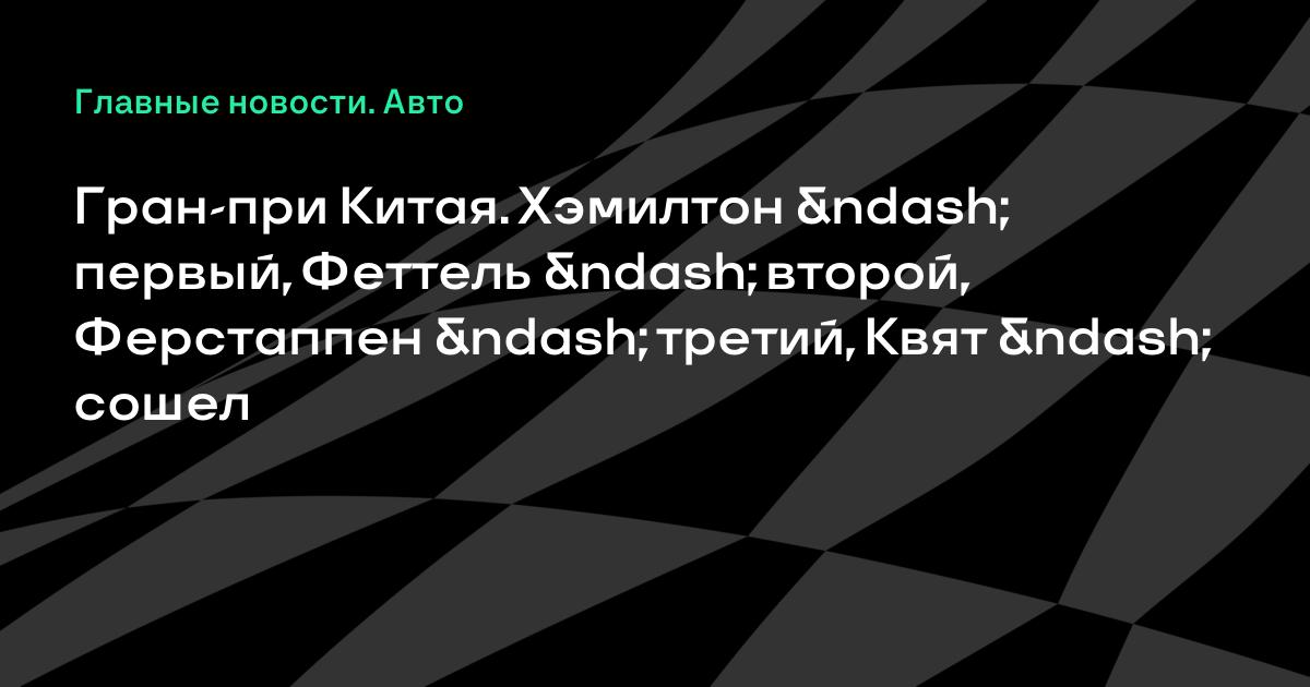 Гран-при Китая. Хэмилтон – первый, Феттель – второй, Ферстаппен – третий, Квят – сошел