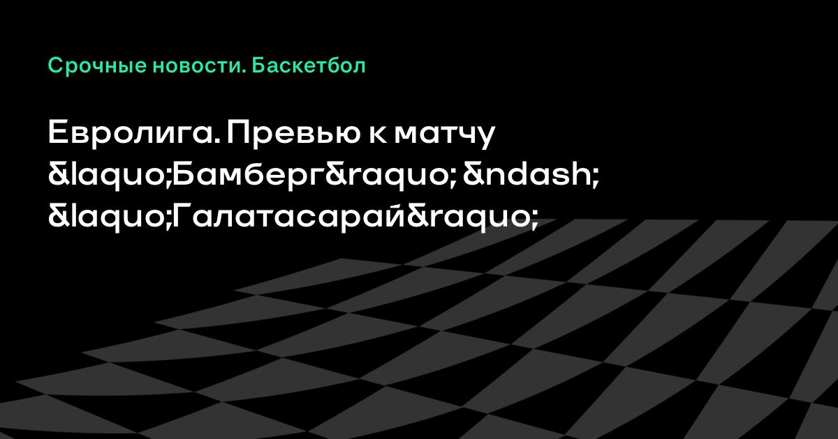 6 апреля 2017, 14:42 Евролига. Превью к матчу «Бамберг» – «Галатасарай» Превью к матчу регулярного чемпионата Евролиги «Бамберг» – «Галатасарай». Источник: YouTube Баскетбол Евролига Брозе Бамберг Баскетбол - видео Галатасарай