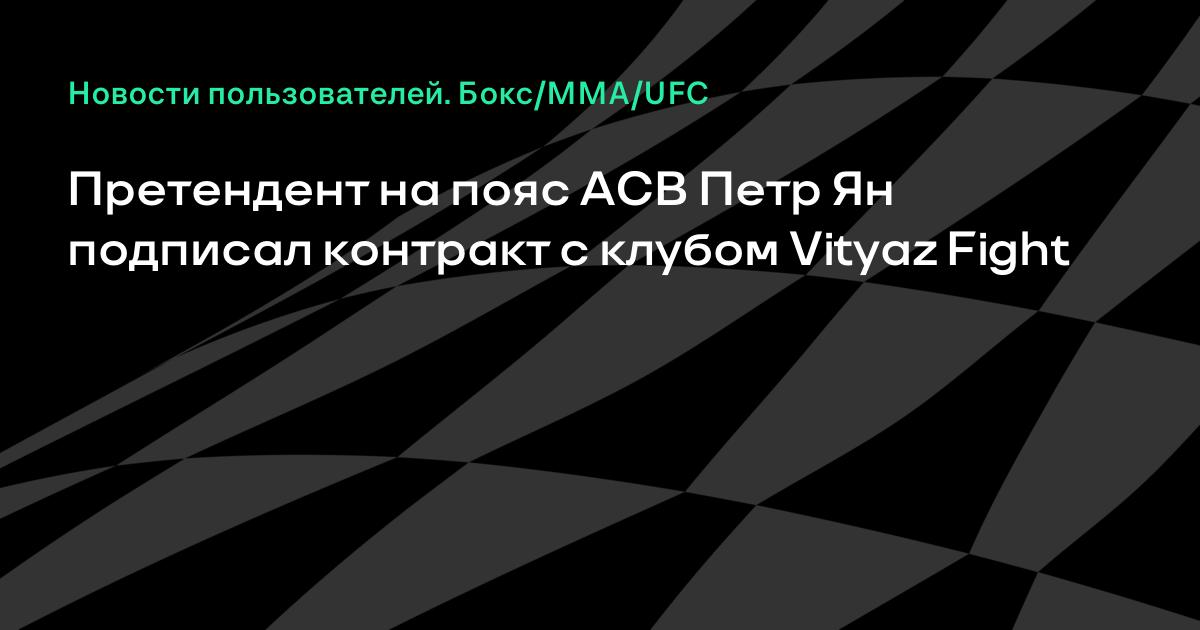 Претендент на чемпионский пояс ACB в легчайшем весе Петр Ян подписал контракт с командой «Vityaz Fight», основателями которой являются боец ММА Сергей Харитонов, российский боксер Александр Поветкин и бизнесмен Эдуард Филбегер.