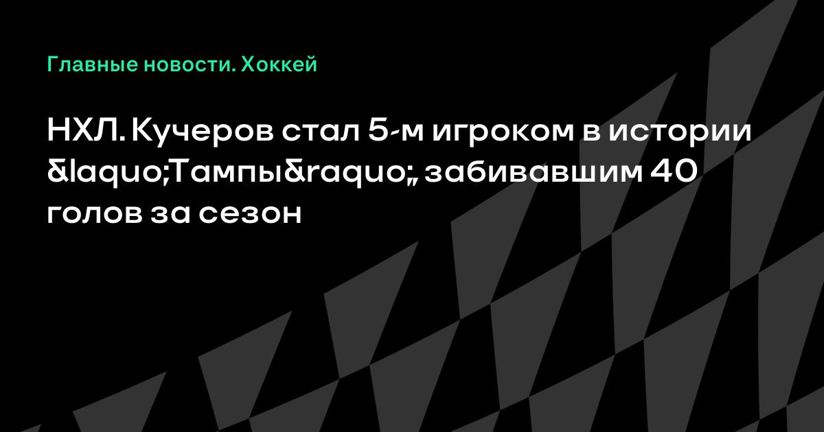 НХЛ. Кучеров стал 5-м игроком в истории «Тампы», забивавшим 40 голов за сезон