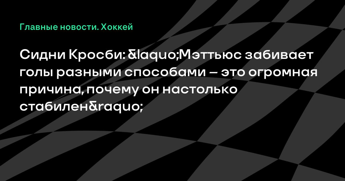 Сидни Кросби: «Мэттьюс забивает голы разными способами – это огромная причина, почему он настолько стабилен»