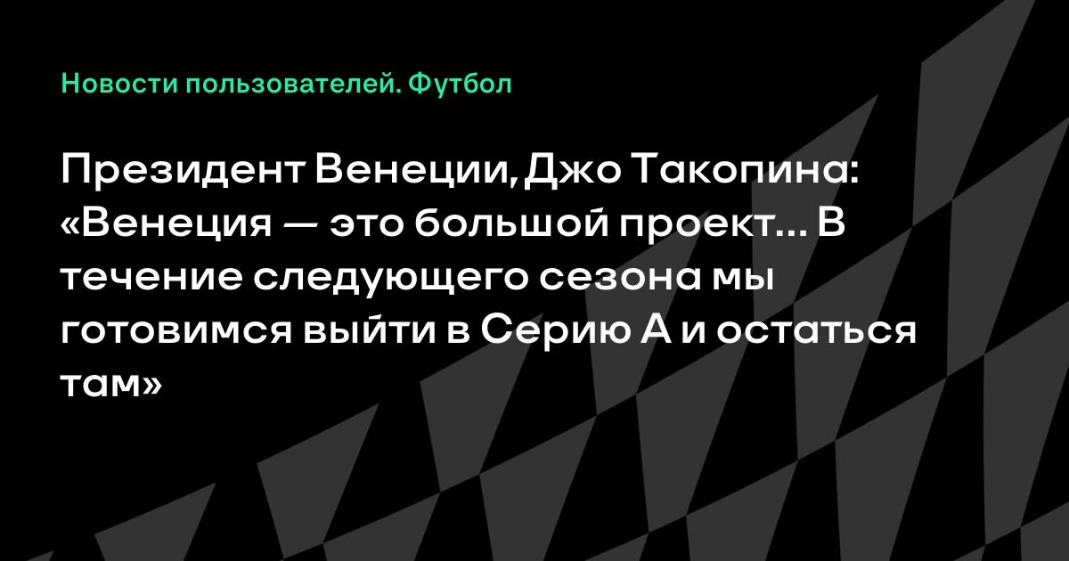 Президент Венеции, Джо Такопина: «Венеция — это большой проект… В течение следующего сезона мы готовимся выйти в Серию А и остаться там»