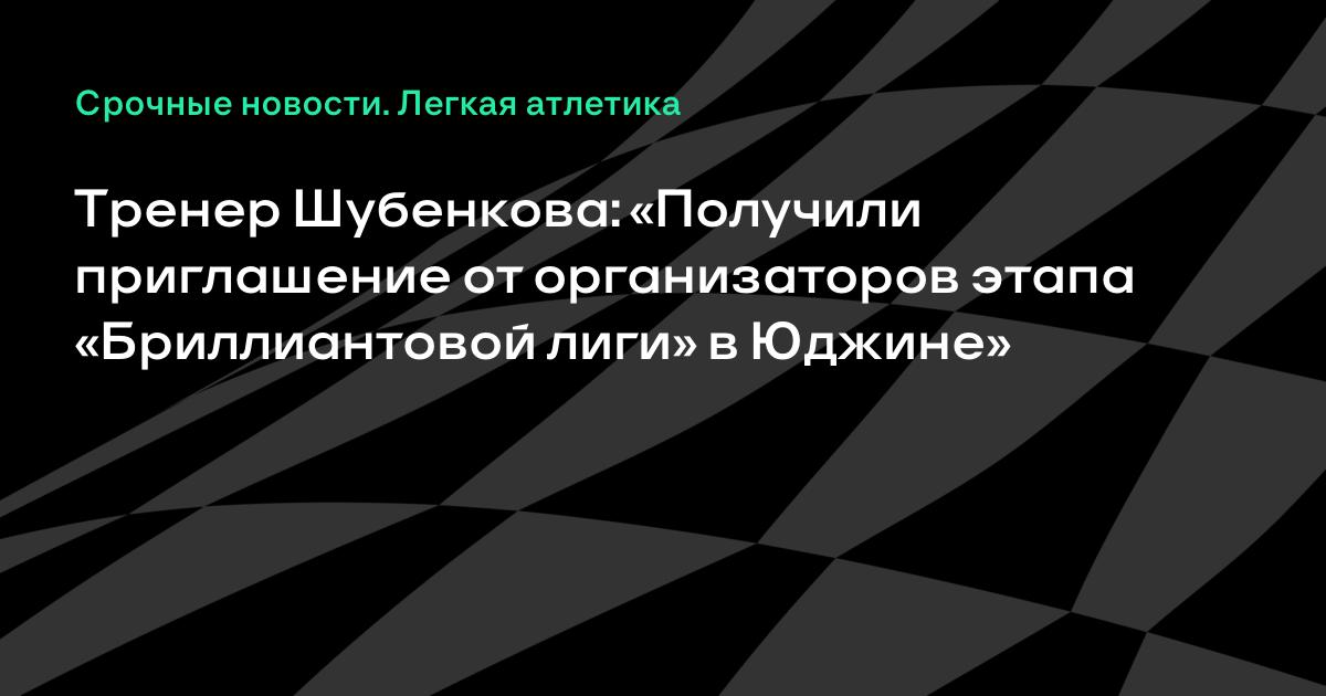 Сергей Клевцов, тренер российского бегуна Сергея Шубенкова, заявил, что его подопечный получил приглашение от организаторов этапа «Бриллиантовой лиги» в американском Юджине.