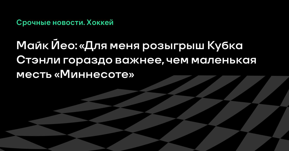 Майк Йео: «Для меня розыгрыш Кубка Стэнли гораздо важнее, чем маленькая месть «Миннесоте»