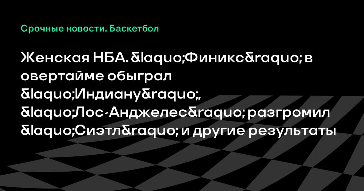 Женская НБА. «Финикс» в овертайме обыграл «Индиану», «Лос-Анджелес» разгромил «Сиэтл» и другие результаты