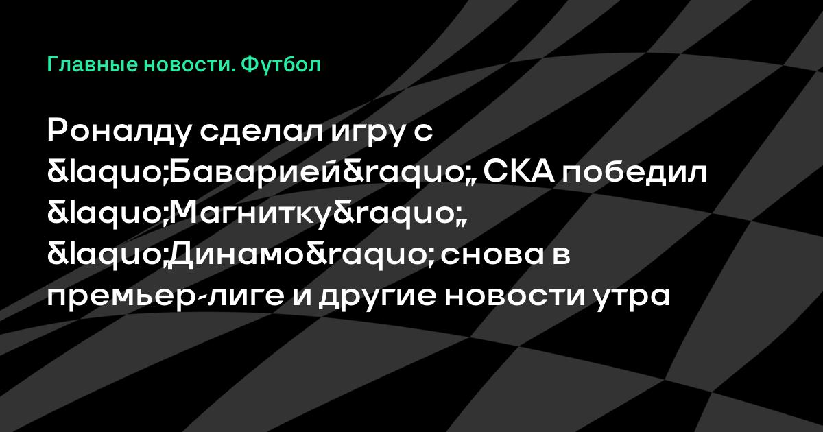 Роналду сделал игру с «Баварией», СКА победил «Магнитку», «Динамо» снова в премьер-лиге и другие новости утра