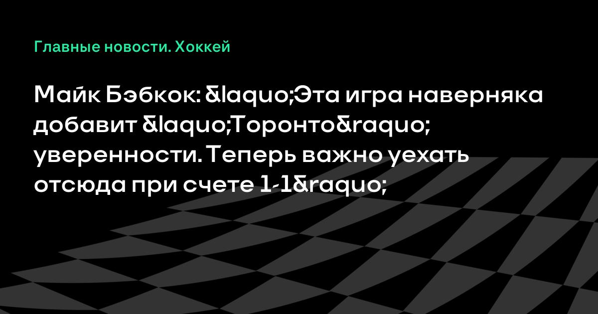 Майк Бэбкок: «Эта игра наверняка добавит «Торонто» уверенности. Теперь важно уехать отсюда при счете 1-1»