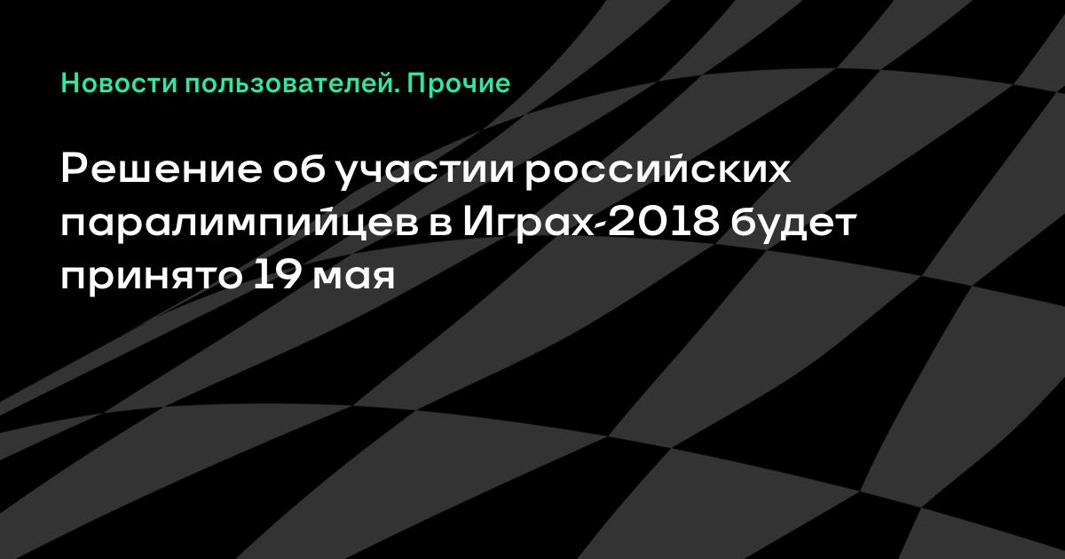 Решение об участии российских паралимпийцев в Играх-2018 будет принято 19 мая