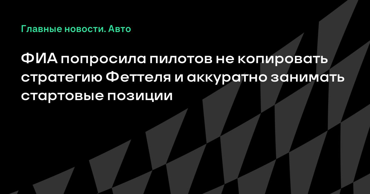 ФИА обратилась к гонщикам «Формулы-1» с просьбой не копировать стратегию Себастьяна Феттеля, который частично расположил свой болид «Феррари» на Гран-при Китая за пределами стартового места. В противном случае пилотов будут штрафовать.