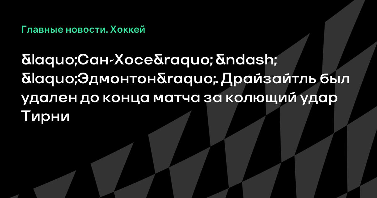 «Сан-Хосе» – «Эдмонтон». Драйзайтль был удален до конца матча за колющий удар Тирни