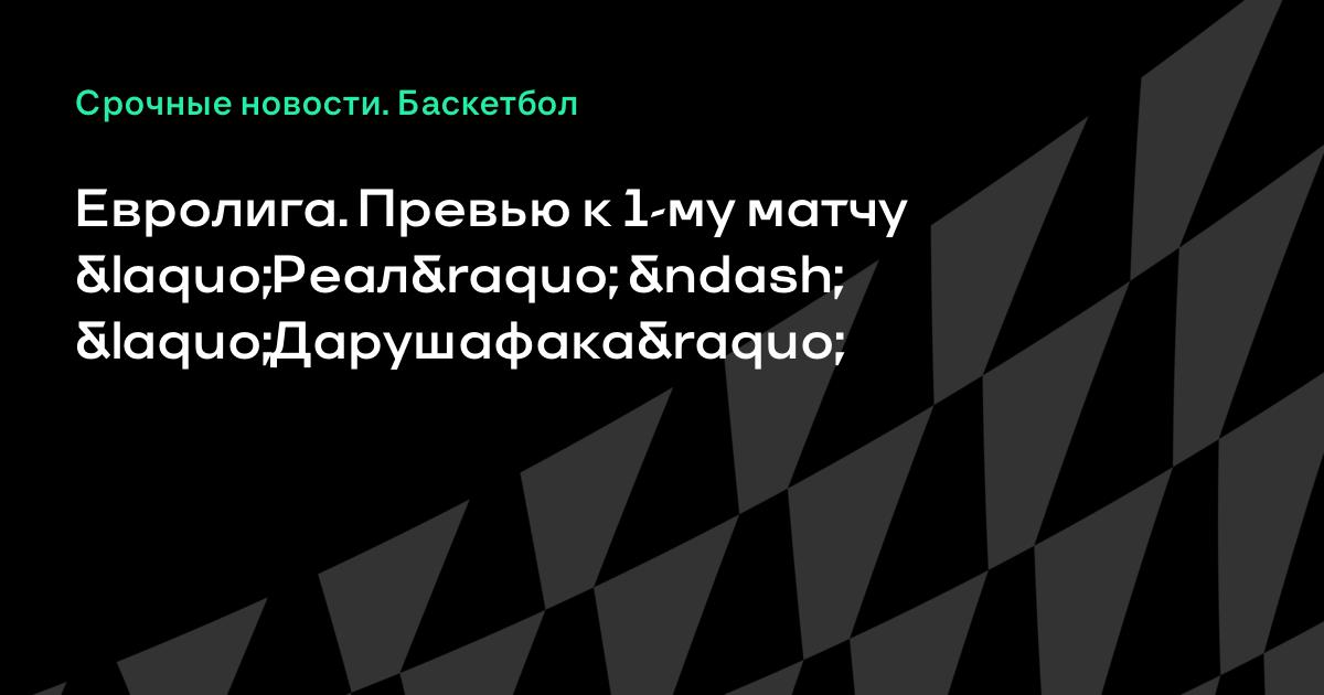 19 апреля 2017, 18:40 Евролига. Превью к 1-му матчу «Реал» – «Дарушафака» Превью к 1-му матчу серии плей-офф Евролиги «Реал» – «Дарушафака». Источник: YouTube Баскетбол Евролига Реал Баскетбол - видео Дарушафака