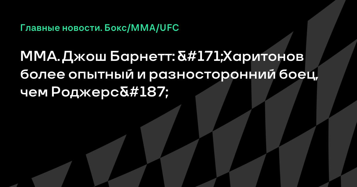 MMA. Джош Барнетт: «Харитонов более опытный и разносторонний боец, чем Роджерс»