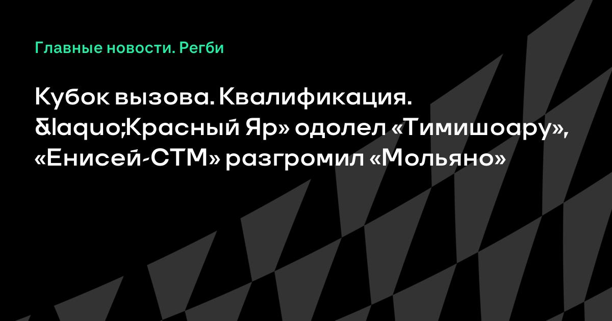 Сегодня прошли вторые матчи плей-офф квалификации регбийного Кубка вызова. «Енисей-СТМ» разгромил итальянский «Мольяно» (51:7), «Красный Яр» оделел румынскую «Тимишоару» (27:18). Оба российских клуба вышли в групповой этап турнира.