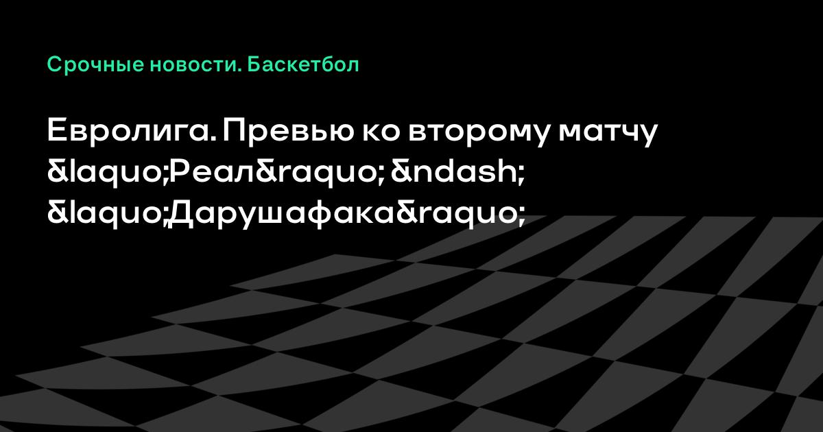 21 апреля 2017, 13:55 Евролига. Превью ко второму матчу «Реал» – «Дарушафака» Превью ко второму матчу серии плей-офф Евролиги «Реал» – «Дарушафака». Баскетбол Евролига Реал Баскетбол - видео Дарушафака