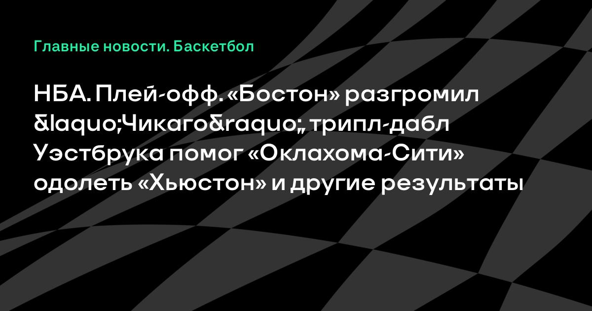 НБА. Плей-офф. «Бостон» разгромил «Чикаго», трипл-дабл Уэстбрука помог «Оклахома-Сити» одолеть «Хьюстон» и другие результаты