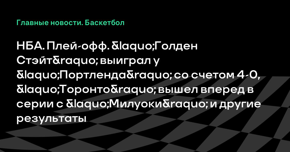 НБА. Плей-офф. «Голден Стэйт» выиграл у «Портленда» со счетом 4-0, «Торонто» вышел вперед в серии с «Милуоки» и другие результаты