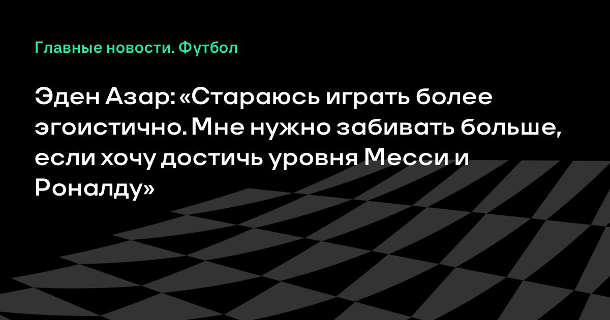 Эден Азар: «Стараюсь играть более эгоистично. Мне нужно забивать больше, если хочу достичь уровня Месси и Роналду»