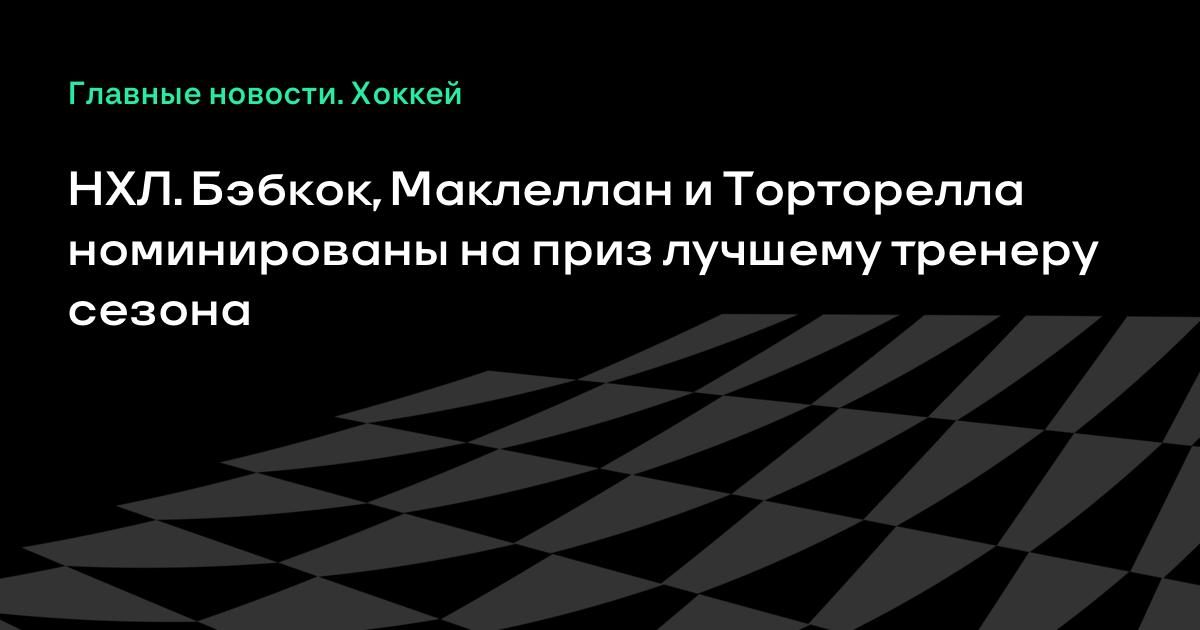 НХЛ. Бэбкок, Маклеллан и Торторелла номинированы на приз лучшему тренеру сезона