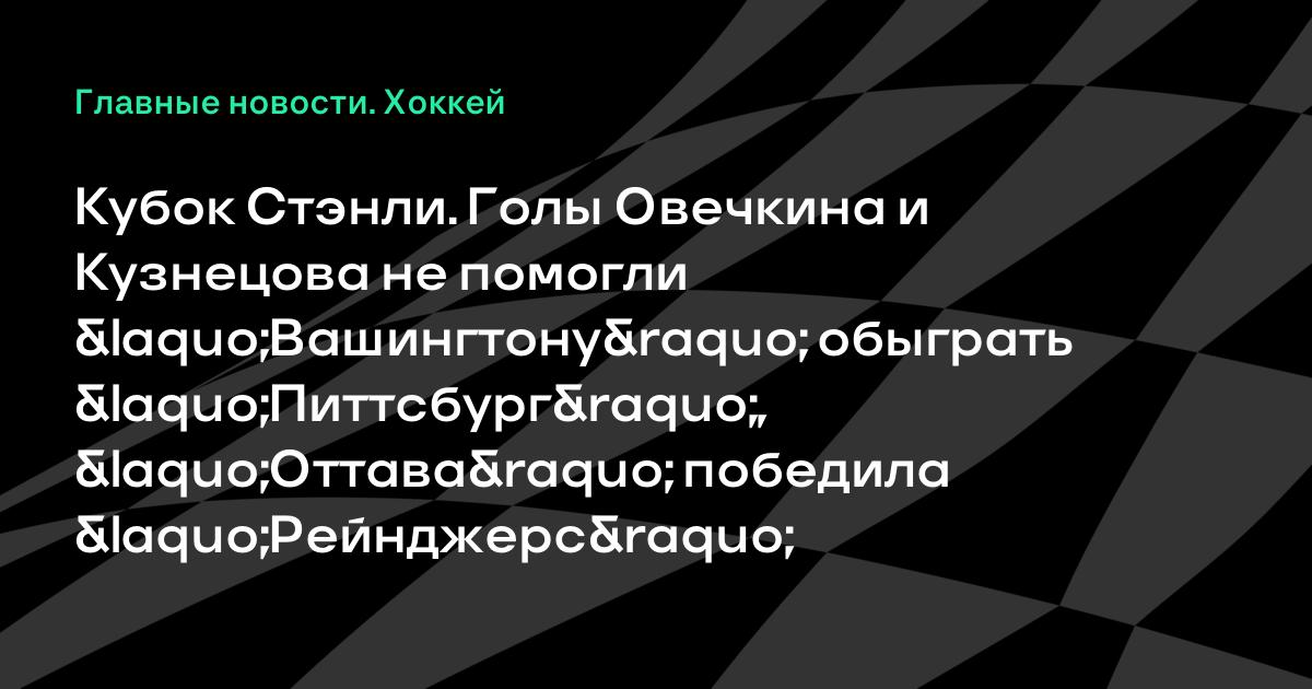 Кубок Стэнли. Голы Овечкина и Кузнецова не помогли «Вашингтону» обыграть «Питтсбург», «Оттава» победила «Рейнджерс»