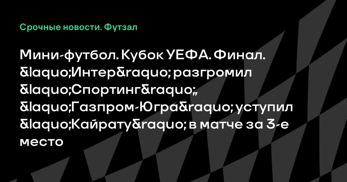Мини-футбол. Кубок УЕФА. Финал. «Интер» разгромил «Спортинг», «Газпром-Югра» уступил «Кайрату» в матче за 3-е место