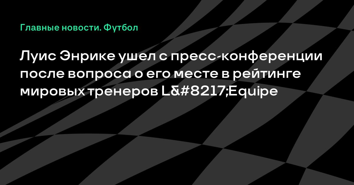 Главный тренер «Барселоны» Луис Энрике ушел с пресс-конференции перед матчем с «Эспаньолом» после вопроса о том, доволен ли он 13-м местом в рейтинге мировых тренеров L’Equipe.