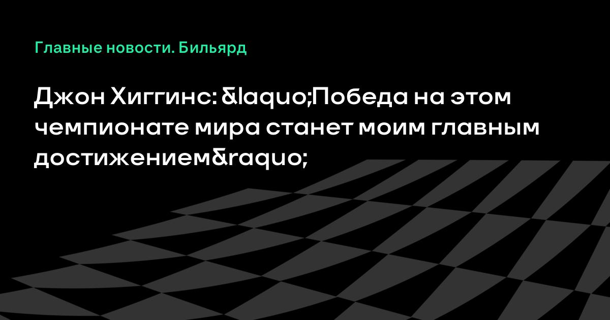 Джон Хиггинс: «Победа на этом чемпионате мира станет моим главным достижением»