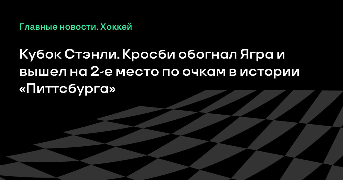 Кубок Стэнли. Кросби обогнал Ягра и вышел на 2-е место по очкам в истории «Питтсбурга»
