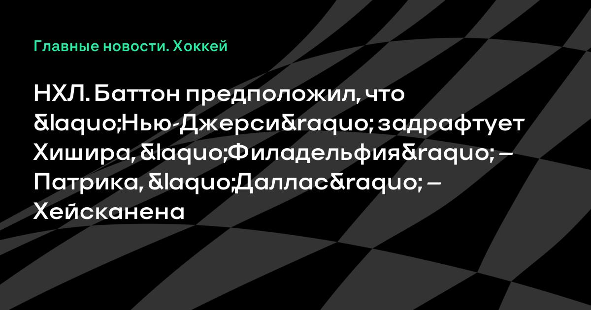 НХЛ. Баттон предположил, что «Нью-Джерси» задрафтует Хишира, «Филадельфия» – Патрика, «Даллас» – Хейсканена