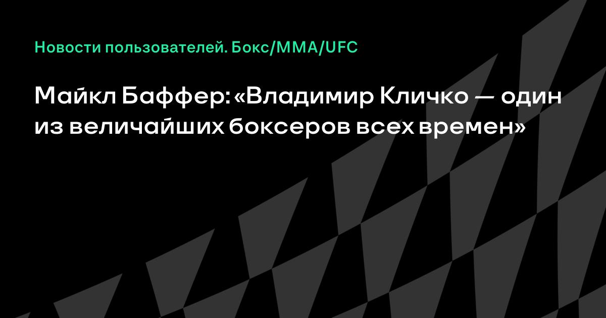 Майкл Баффер: «Владимир Кличко — один из величайших боксеров всех времен»