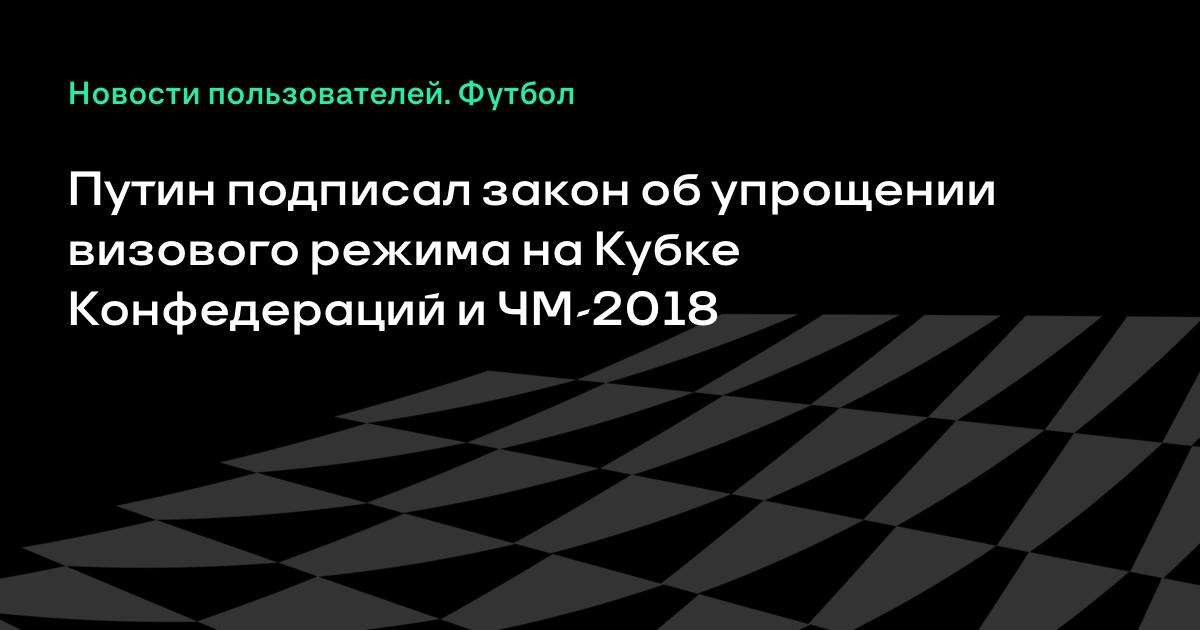 Путин подписал закон об упрощении визового режима на Кубке Конфедераций и ЧМ-2018