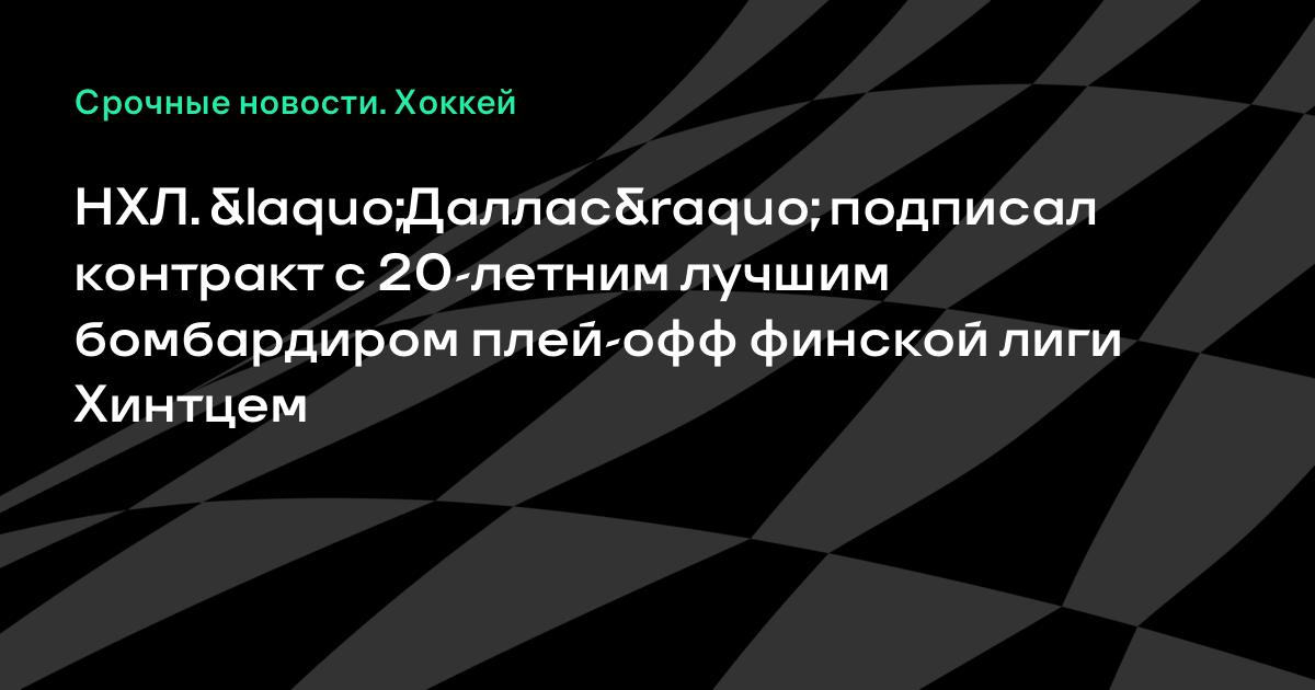 НХЛ. «Даллас» подписал контракт с 20-летним лучшим бомбардиром плей-офф финской лиги Хинтцем