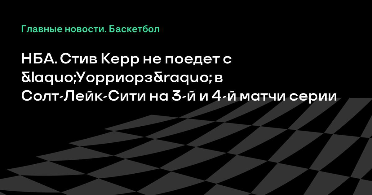 Главный тренер «Голден Стэйт» Стив Керр не поедет с командой в Солт-Лейк-Сити на третий и четвертый матчи серии второго раунда с «Ютой» (2-0), сообщает RealGM.