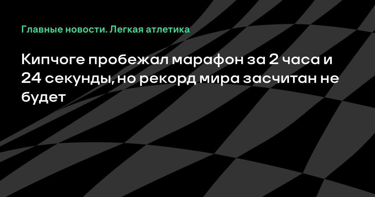 Кипчоге пробежал марафон за 2 часа и 24 секунды, но рекорд мира засчитан не будет