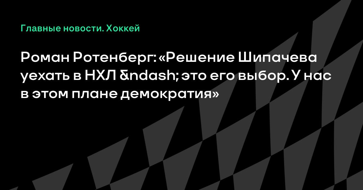 Роман Ротенберг: «Решение Шипачева уехать в НХЛ – это его выбор. У нас в этом плане демократия»