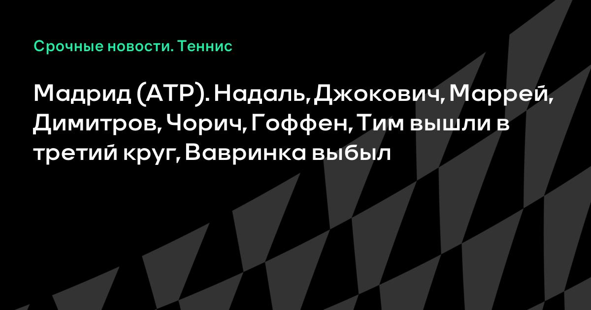 Мадрид (АТР). Надаль, Джокович, Маррей, Димитров, Чорич, Гоффен, Тим вышли в третий круг, Вавринка выбыл
